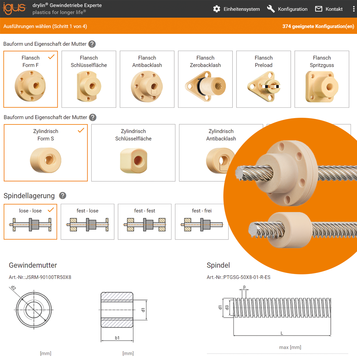 Технология ходового винта drylin®, а также ходовые винты и гайки винтов по технологии dryspin® основаны на принципе бессмазочной линейной технологии. Для полностью бессмазочного применения винты из нержавеющей стали или твердоанодированного алюминия сочетаются с высококачественными полимерами из проверенного ассортимента продукции iglidur®. Работая без масла или жиров в качестве смазки, наша технология ходового винта соответствует самым высоким гигиеническим стандартам. Кроме того, работа в сухих условиях позволяет экономить значительную часть затрат на уборку и техническое обслуживание. За счет устойчивости к воздействию грязи и бесшумной работы материалов, используемых для ходового винта, продукцию можно использовать во множестве возможных областей применения при различных условиях. Кроме того, значительно сокращается износ и увеличивается срок службы. Это позволяет сэкономить около 40 % обычных расходов. Воспользуйтесь преимуществами технологии ходового винта drylin® и dryspin® в своей области применения.