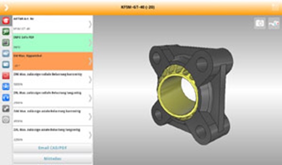 Using the mobile igus® 3D-CAD app, engineers can search the igus® product catalog for components and configure these. Receive native file formats for further processing at your workstation.