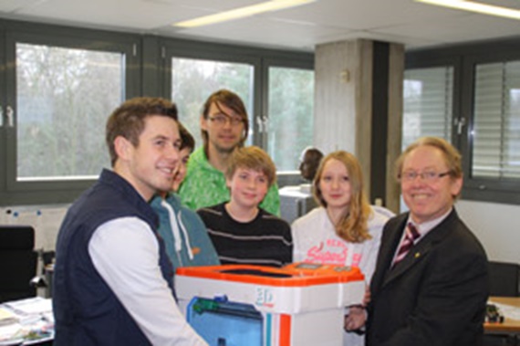 Наша поддержка молодых инженеров, 3D-принтер в дар гимназии им. Отто Гана в Бенсберге. Для участия в техническом конкурсе учебное заведение нуждалось в принтере.