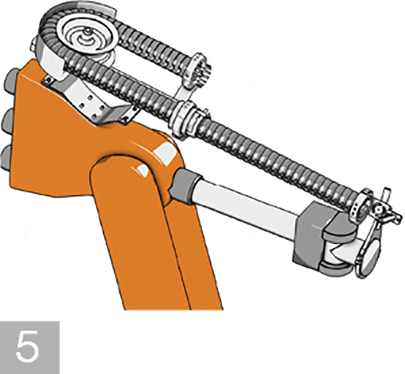 Assemble the "clamp clip" (2) on axis 6 of the robot and then the adjustable triflex® R mounting bracket