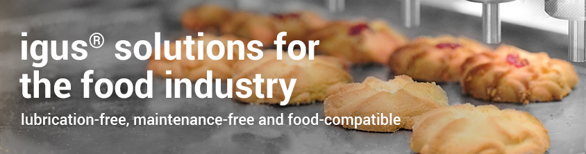 Для выполнения строгих требований касательно гигиены и безопасности пищевых продуктов на всех стадиях технологического процесса компания igus® предлагает к поставке полимеры для машин и оборудования в пищевой промышленности. Указанные компоненты машинного оборудования были специально разработаны для подвижных узлов и не требуют смазки, в результате полностью исключается возможность загрязнения выпускаемых изделий.