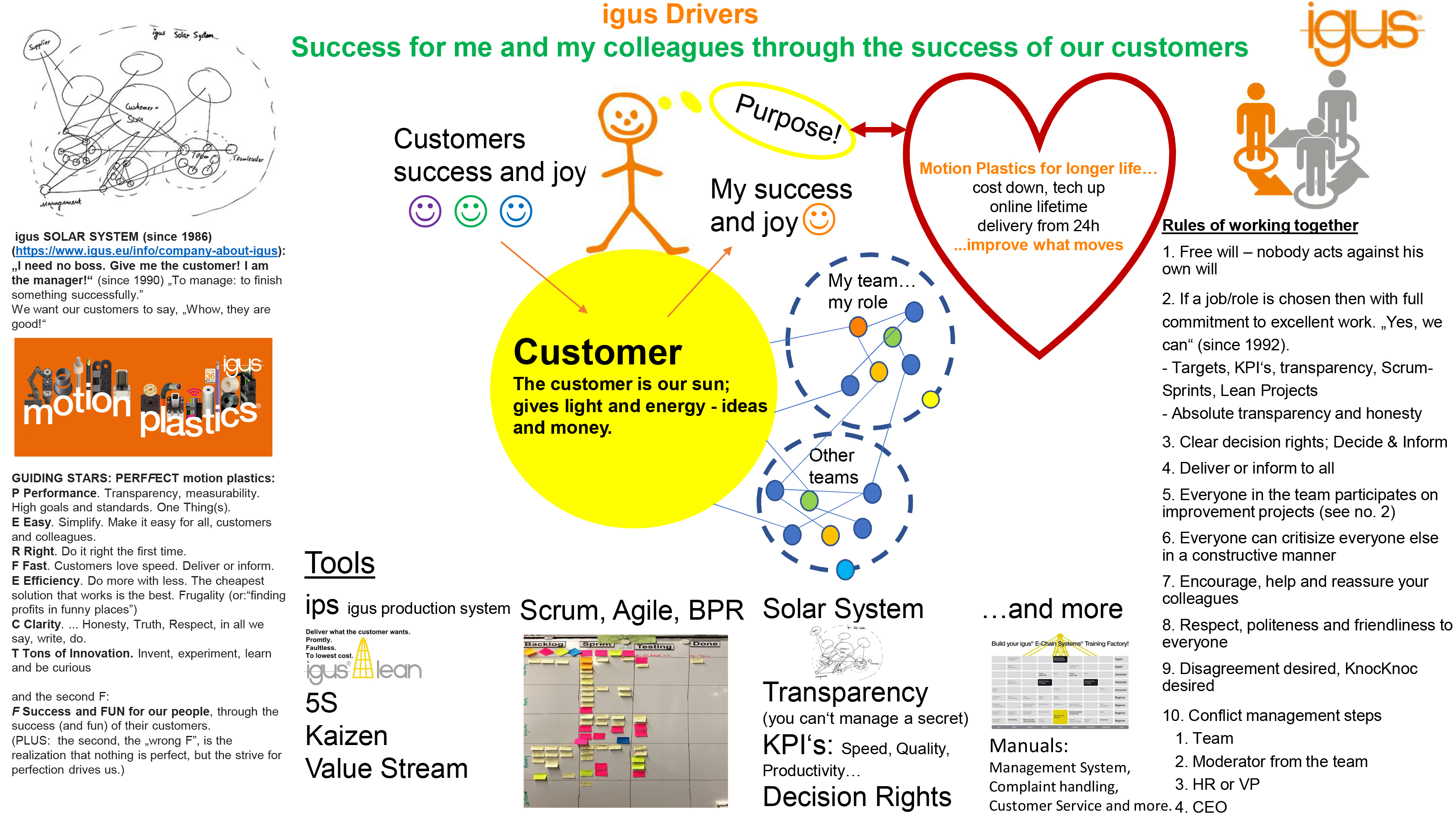 В компании igus вся работа подчинена интересам заказчика. Для нас заказчик важен так же, как солнце для жизни на Земле, это источник света, тепла и энергии. Заказчик дает нам идеи и работу, позволяет нам расти и прогрессировать. "Солнечная система igus" - строгий курс нашей корпоративной философии. Работники и отдела находятся на орбите вокруг заказчиков, внимательно изучают их пожелания и находят решения их проблем. Доволен заказчик, довольны и мы.