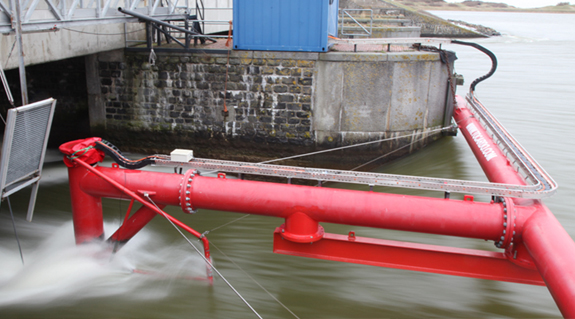 Tide turbines generate electricity from fast-flowing water.