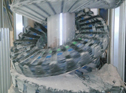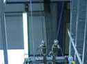 This high-frequency welding apparatus moves in a working area of 8 x 2,5 metres and rotates about 360 degrees.
