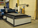 This plasma cutting machine cuts metal plates at maximum speed.